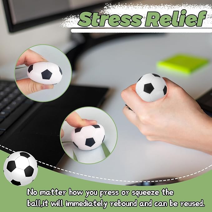 - 【Versatile for Adults & Events】 Perfect for office relaxation, team-building games, sports-themed events, party favors, or wellness programs. Their fun soccer design makes them suitable for adults,and even as light play accessories for pets—bringing stress relief and a playful spirit to any setting.