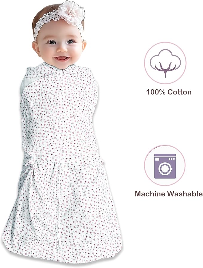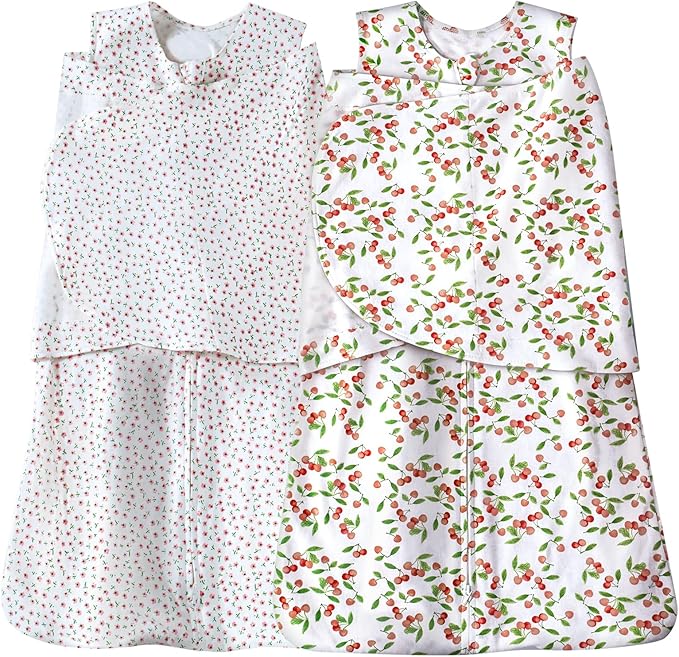 Baby Sleep sack Swaddle,Swaddles 3-6 Months,3-Way Adjustable Wearable Transition Blanket 100% Organic Cotton 2-Piece,12-18 lbs,1.0 TOG(Floret&Cherry)