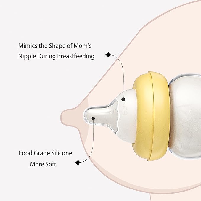 - YOHKOH Natural Baby Bottles are made of high quality borosilicate glass, pure and clear without impurities. Paired with a liquid silicone nipple, it can help empty the bottle of air, and the baby can comfortably complete the feeding.