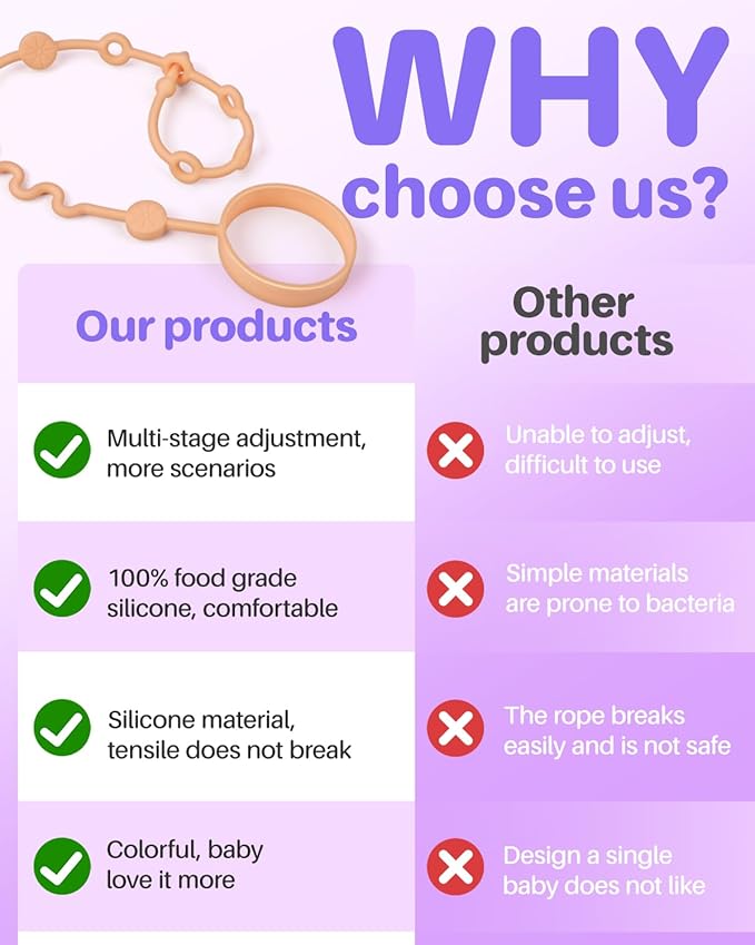 - Advanced Safety Toy Straps for Baby - Our baby toy strap is made of food-grade silicone, certified to pass a 15-pound tensile strength test. It is BPA-free, lead-free, phthalate-free, tasteless, and non-toxic. The set includes 4pcs fixed stroller accessories Leashes and 1pc bottle toy belt that you can choose from at will.