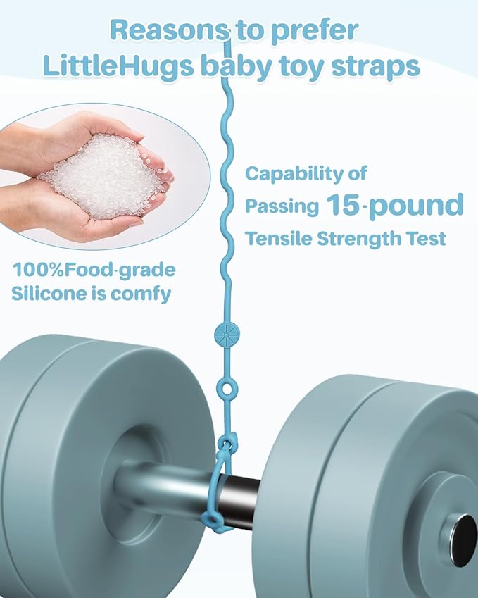 - Adjustable Buckle Design: LittleHugs baby tether strap is designed with advanced bending, stretching, and adjustable features, allowing for a customized fit. The toy holder for stroller has a diameter of 5.0mm, making it easy to use on baby pacifiers, teethers, toys, bottles and more. It is an essential accessory for busy parents on the go.