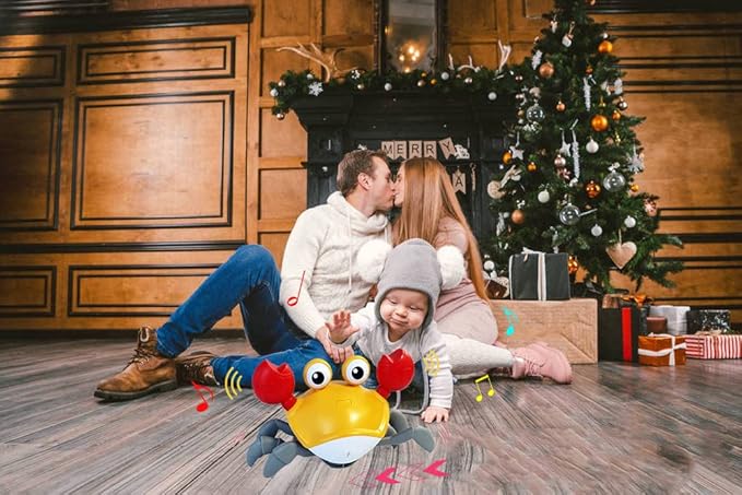- Dancing Crab Baby Toy: Helps Baby Crawl Your little will absolutely attracted by the way the crab crawls. The baby will try to crawl towards and catch it. Of course, because of the obstacle avoidance sensor, they could never catch it.