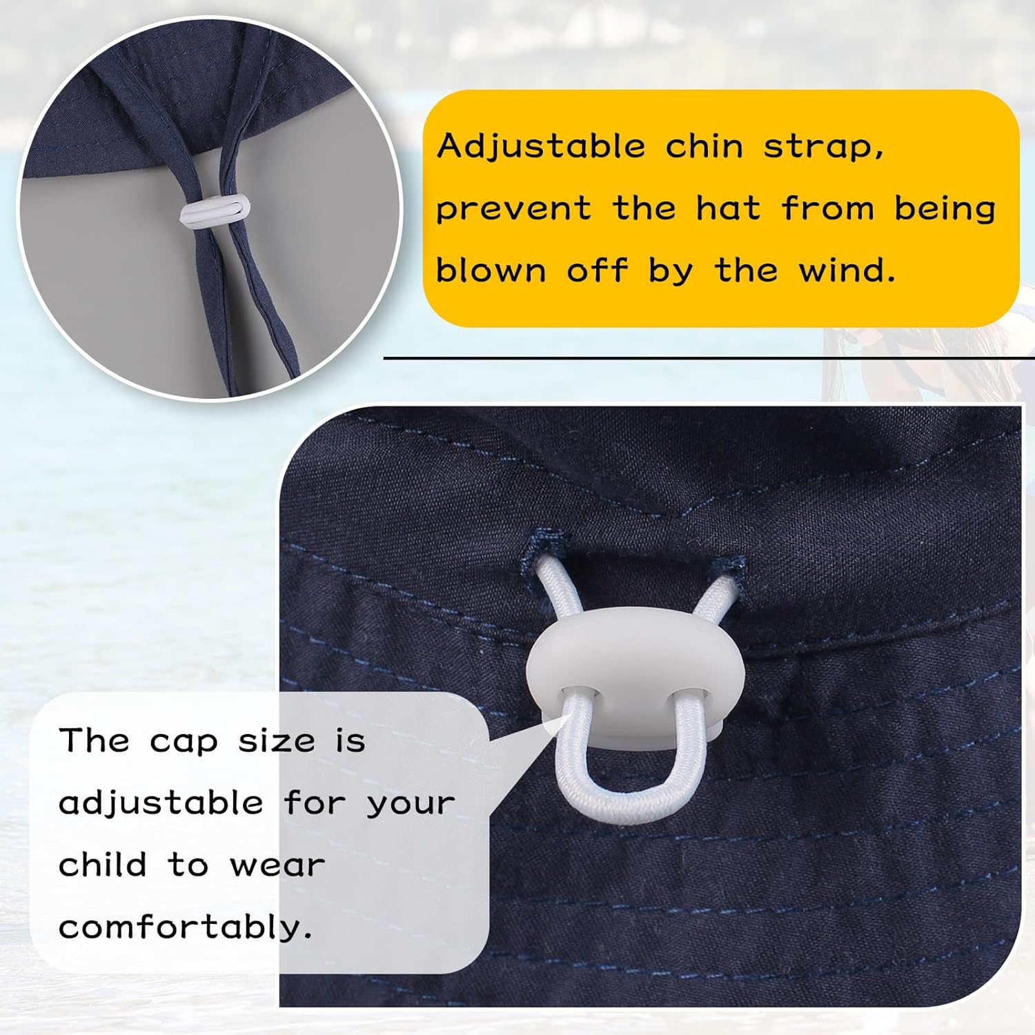 - ULTRA WIDE BRIM: Unlike other infant sun hats, our toddler sun hat has a super wide brim that provides excellent shade for your kid. The breathable and UPF fabric protects your baby's head, eyes, face, and neck from strong light. The adjustable chin strap ensures a secure fit.