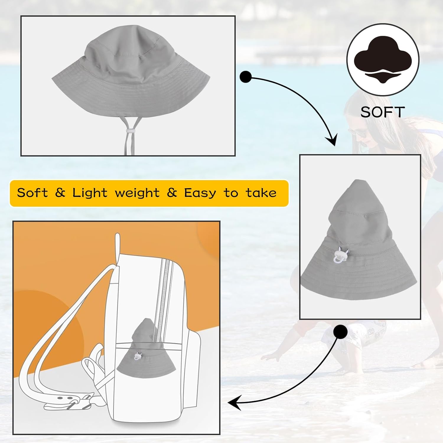 - MULTIFUNCTION BUCKET HATS: Our soft toddler hats are lightweight and easy to fold, making them travel-friendly. They are the perfect baby beach accessory for boys and girls. Suitable for various outdoor activities such as fishing, safari, travel, camping, boating, and more.