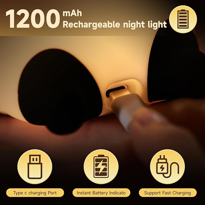 - International Standard Animal Night Light: LED kawaii duck night light children is not only portable and wireless,but also this baby night lamp is nursery night light for breastfeeding so cute and practical children's night lights and night light. Which with built-in 1200 Ah battery, companion sleeping light and rechargeable LED bedside lamp baby room ensure protect your eyes.
