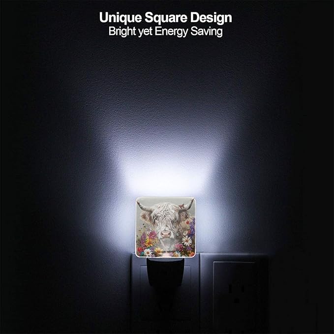 Led Night Light, Highland Cow Decorative Plug in Nightlights,with Smart Auto Dusk to Dawn Night Light for Bedroom, Kitchen, Nursery, Bathroom