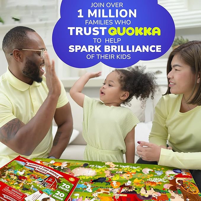 QUOKKA Search and Find Puzzles for Kids Ages 4-6 - Riddle Kids Puzzles 6-8 Years Old - 70 Unique Pcs - 20 Illustrated Guessing Cards - Engaging Children Themes - Farm Puzzle Gift for Toddlers 3-5
