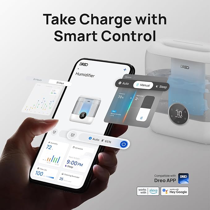 - ๐๐ช๐ข๐๐๐๐๐ฎ ๐พ๐ค๐ฃ๐ฉ๐ง๐ค๐ก, ๐๐๐๐ง๐๐ซ๐๐ง ๐๐ค๐ช ๐ผ๐ง๐: Use the DREO app, voice commands, or Alexa to remotely manage your plant humidifier, Easily monitor indoor humidity and adjust settings to ensure a healthy environment for your family, especially suited for babies, plants, and pets.