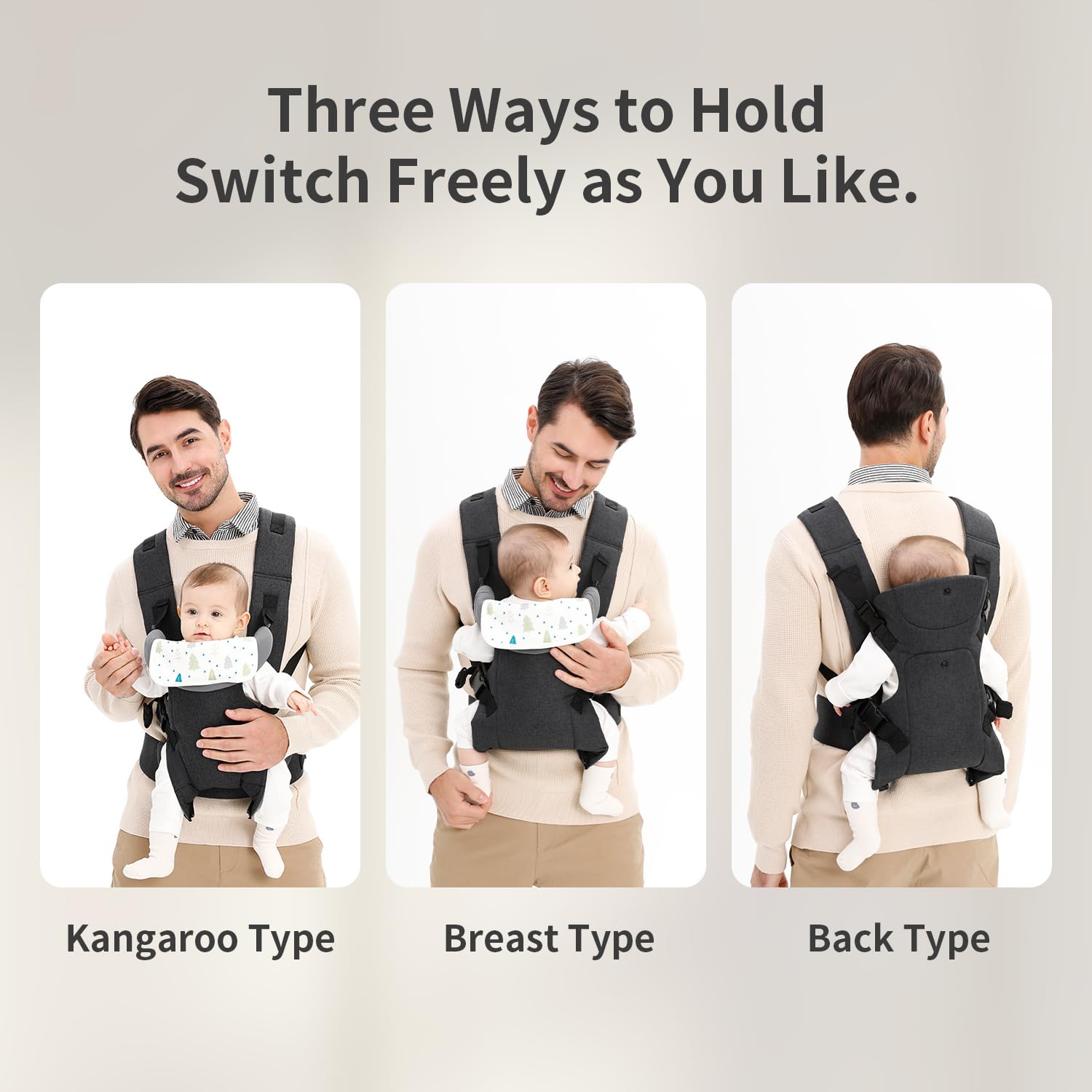 - One Size Fits 3 carry ways: Baby Carrier is suitable for children aged 0-24months and weighing 7lb-35lb, according to the different ages of children, there are also suitable carry ways for you,switch Freely as You Like.