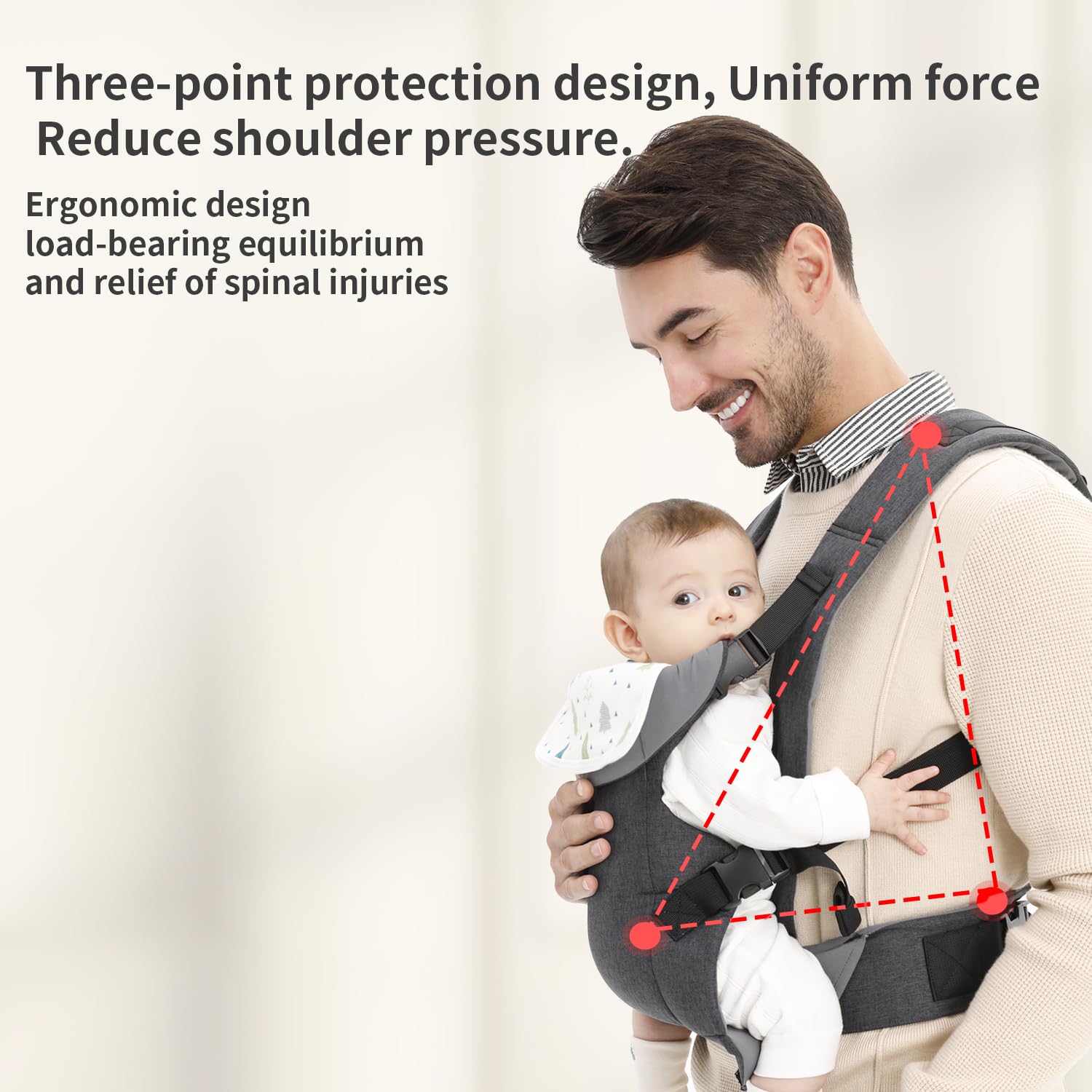 - One Size Fits 3 carry ways: Baby Carrier is suitable for children aged 0-24months and weighing 7lb-35lb, according to the different ages of children, there are also suitable carry ways for you,switch Freely as You Like.