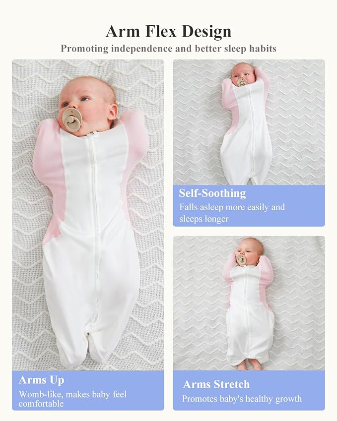 - 𝗦𝗹𝗲𝗲𝗽 𝗶𝗻 𝗣𝗿𝗲𝗳𝗲𝗿𝗿𝗲𝗱 𝗣𝗼𝘀𝗶𝘁𝗶𝗼𝗻 𝘄𝗶𝘁𝗵 𝗔𝗿𝗺𝘀 𝗙𝗿𝗲𝗲𝗱𝗼𝗺: With KIDIRA's baby swaddles for 0-3 months, babies can move and position their arms freely, letting them self-soothe by finding the most comforting pose, whether arms up, stretched to the sides, hands on chest, or flat down. Say farewell to the startle reflex, ensuring longer, more peaceful sleep. Plus, our unique design means no more arms out, helping to prevent those pesky facial scratches!