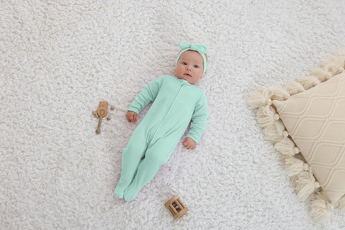 - Footed and Mitten Cuffs: Designed with footed bottoms and fold-over mitten cuffs to keep your baby's feet and hands warm and protected.