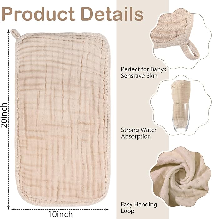 - Easy Care: this muslin cotton baby bath towels set is designed to be machine washable; The towels have quick dry capabilities, making them hygienic, easy to clean, and long lasting; Perfect for everyday use, these baby towels and washcloths set ensure softness and maximum absorbency remains uncompromised even after many washes