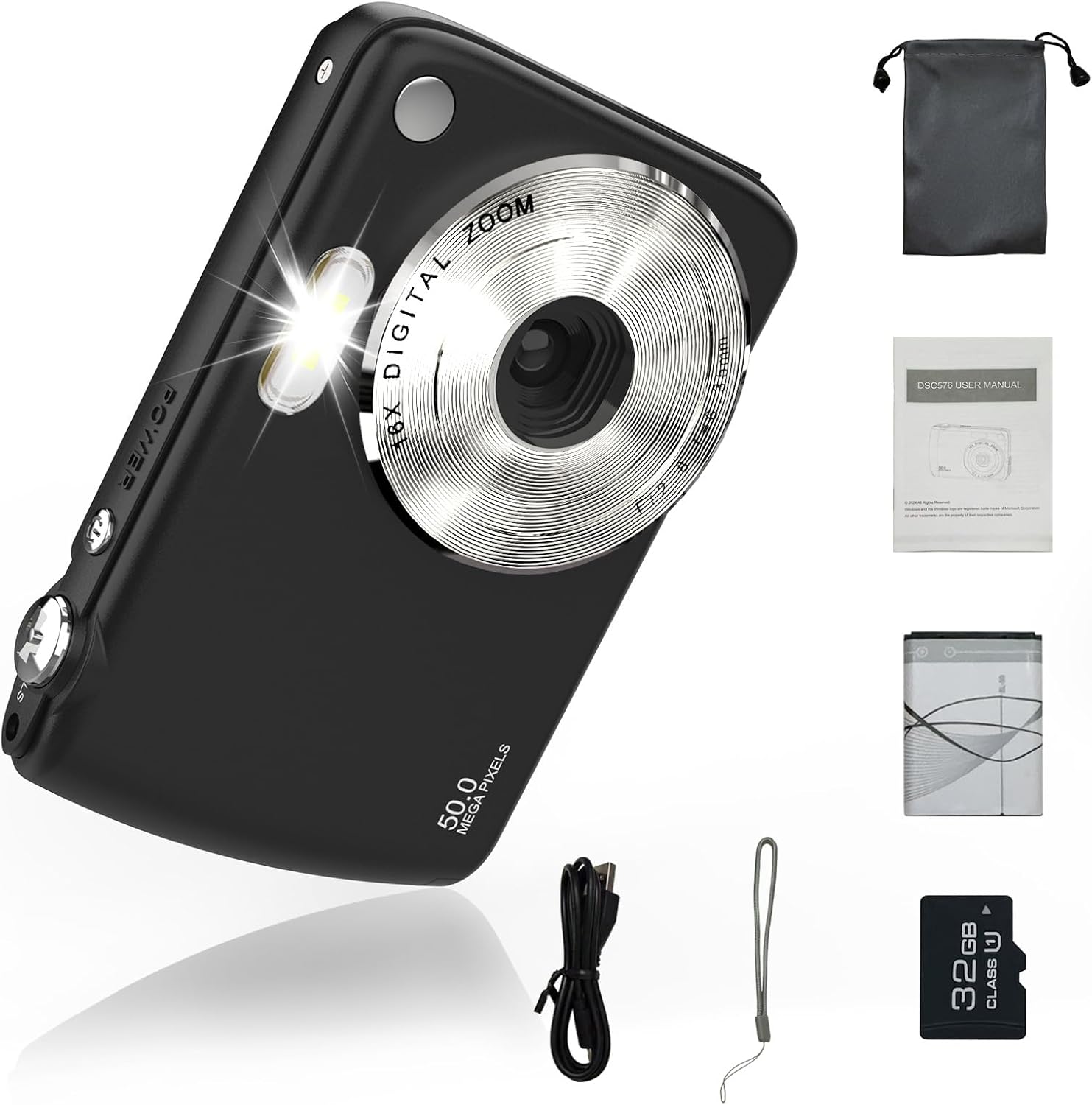 Digital Camera, Kids Cameras for 50MP FHD 1080P, Digital Point and Shoot Camera with 16X Zoom Anti Shake, Compact Small Cameras Gift for Boys Girls Kids, Black