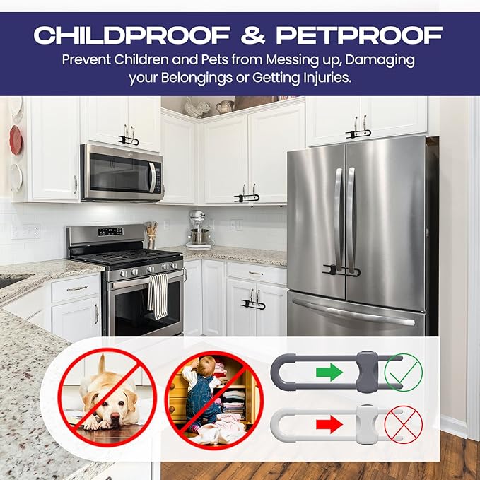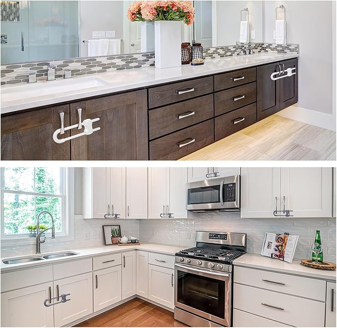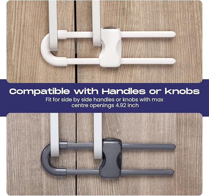- Wide applications: these cabinet locks can help to prevent your little ones from reaching to kitchen cabinets, side by side refrigerator, cupboards, storage doors and make them stay out of trouble, can be applied in kitchen, bathroom, pantry room, bedroom etc.; And these sliding cabinet locks, reusable and convenient, are suitable for all kinds of mushroom shaped round knobs and D-shaped or annular handles, safely keeping curious babies and active pets away from cabinets