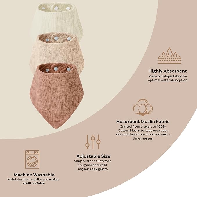 - Muslin Cotton Bandana Drool Bibs: Keep your baby protected from drools and spills with Muslin Cotton Bandana Drool Bibs. Made from 100% Cotton, soft and gentle muslin cotton, these bibs are comfortable and safe for your little one's delicate skin