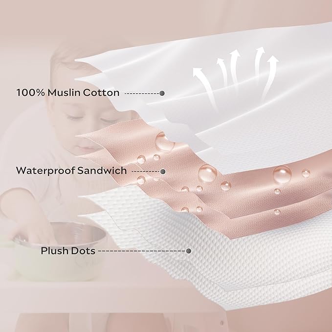 - Highly Absorbent: These bibs for baby girls and boys feature an innovative 6-layer design that is highly absorbent and won't let drool or other liquids soak through the bib, keeping your baby dry all day long