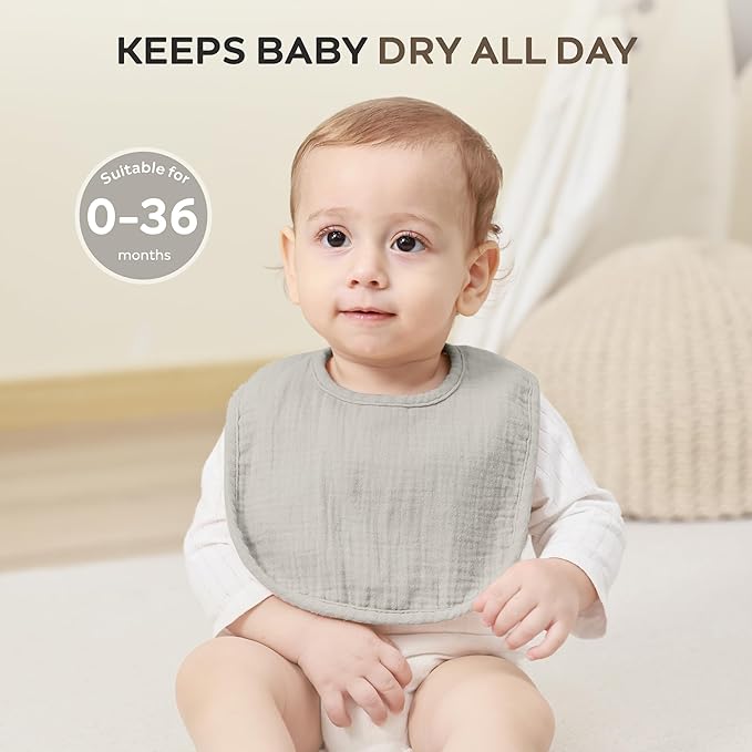 - Adorable Designs: The Baby Bib Set comes in 8 colors, making it easy to add color to your baby's attire and a thoughtful choice for drooling and teething, also makes a great gift for new mums