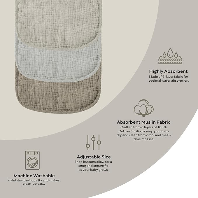 - Adjustable Snaps: These bibs feature easy-to-use snaps, making it a breeze to get them on and off your little one quickly and easily