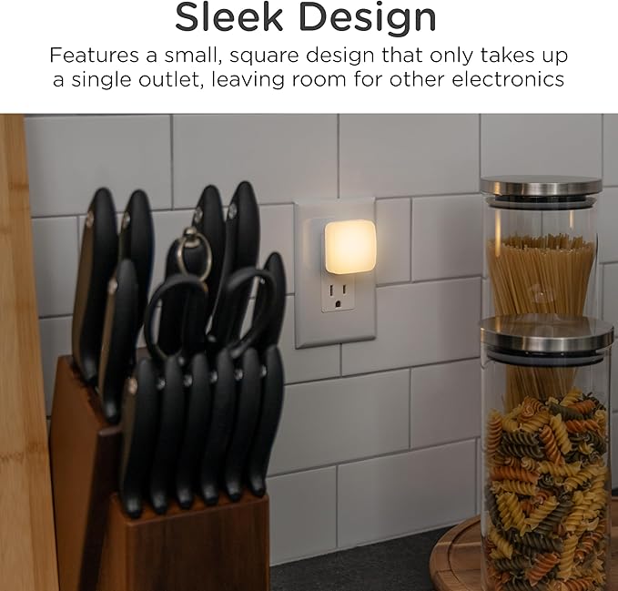Lights By Night Mini Square LED Night Lights Plug Into Wall, Dusk to Dawn Sensor, Compact, Ambient Lighting, for Kids or Adults, Bedroom, Bathroom, Nursery, Hallway, 4 Pack, 82488