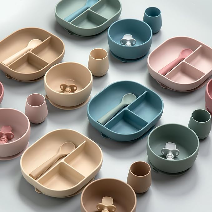 SAMiGO Silicone Baby Bowl and Spoon Set with Suction and Lid, First Stage Self Feeding Essentials, Food Bowl for 6+ Months