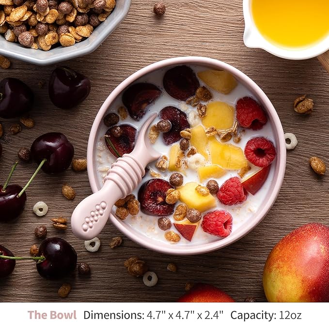 - Suction Works Great - With a generous capacity of 12oz, our bowl firmly sticks to where it's placed without sliding around, thanks to the base that creates a beautiful seal on smooth surfaces. To release, simply lift the tab.
