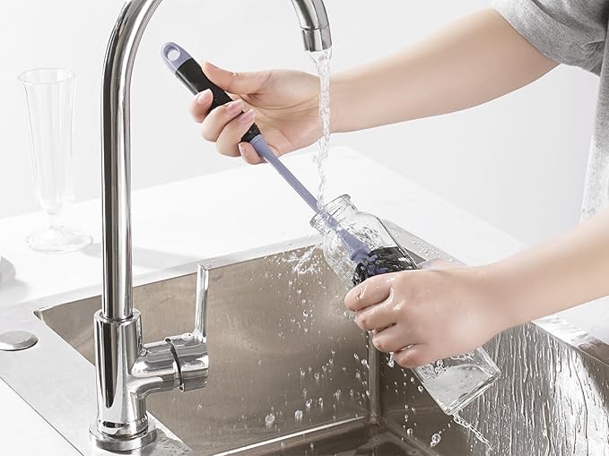 Bottle Brush Cleaner, Long Handle Bottle Brush with Dual Bristles for Water Bottles, Glassware, Mugs, Sports & Baby Bottles Cleaning, Black 4 Pack