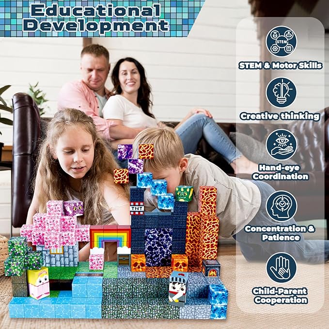 - 【Dark Swordsman's Forest Castle Magnetic Cube Kit】Including 150 magnetic cubes in 18 colors. Idea booklet with the storyline and beautiful patterns, keep them busy in clever ways. GraceDuck magnetic activity cubes are made of high-quality ABS material and crafted with round edges. Unlike other magnetic toys on the market, our magnetic cubes kit has super strong internal magnetic, which is easier for toddlers ages 3+ to stick the cubes together and make builds sturdy. Perfect STEM toys help kids gain a deeper understanding of the structure and learn about magnetic properties!