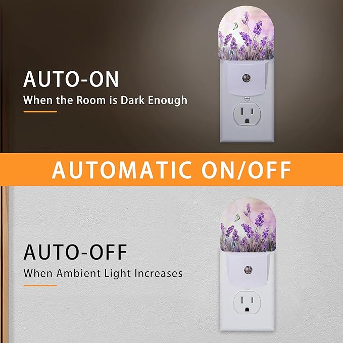 Lavander Flower Butterfly Night Light,Night Lights Plug into Wall with Dusk to Dawn Sensor,Lamp for Bedroom Bathroom Hallway Nightlight for Women Girls