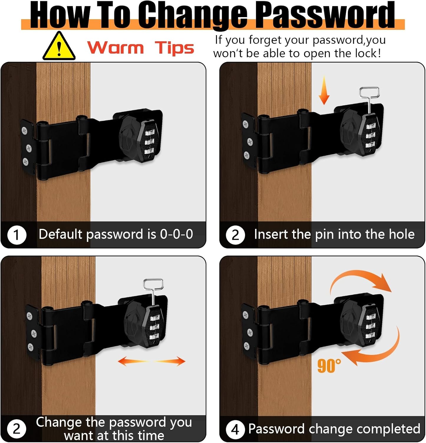 Double Hinge Cabinet Password Hasp Lock Zinc Alloy Cabinet Door Password Lock Password Rotary Hasp Lock 3 Digit Sliding Lockable Rotary Door Lock Hasp for Cabinets, Doors, Flip Barn Door (Black)