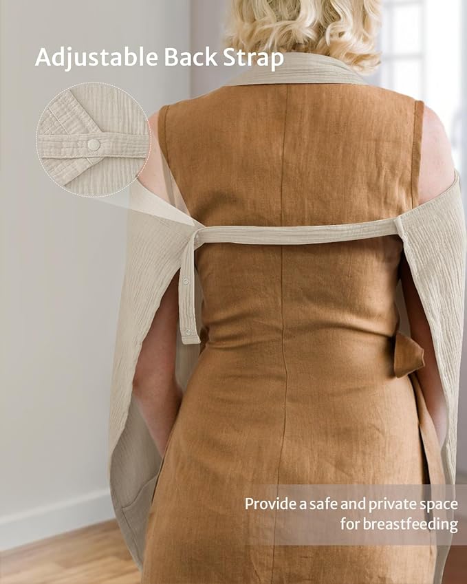 - Adjustable Neck and Back Straps: The apron-like nursing cover comes with adjustable neck and back straps to help moms keep the cover in place and provide a safe private breastfeeding space while nursing. Makes breastfeeding on the go a breeze