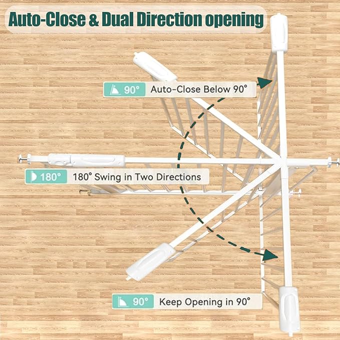 - 【No Drilling Installation】Create child-friendly areas with our pressure mounted baby gate, a convenient walk through baby gate that doesn’t require reinstallation each time you pass through. Easy to assemble and disassemble, while not hurting your wall or banisters. To prevent falls, never use pressure-installed gate at top of stairs.