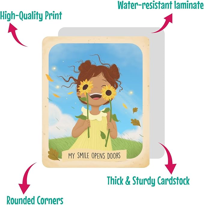 - BEAUTIFULLY ILLUSTRATED & MINDFULLY DESIGNED: Each affirmation is paired with a thoughtful illustration. Printed on laminated cards with rounded corners, sized 3.1 x 2.6 in for durability and ease of use.