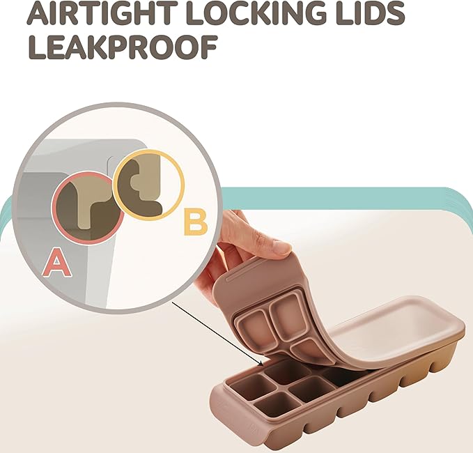 - 【Leak-Proof Freshness】 This double airtight silicone ice tray seals from both the inside and outside, preventing leaks and keeping your contents fresh, whether it's purees, soups, or breastmilk