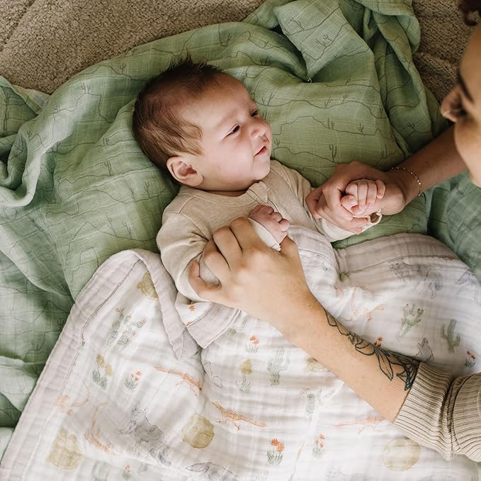 - PREMIUM QUALITY: We choose premium 100% cotton muslin for crafting our quilts to ensure your baby’s delicate skin is wrapped in a soft, breathable fabric that allows heat to escape and fresh air to enter. Freely woven muslin also provides flexibility for little arms and legs to comfortably move. Our quilts have detailed stitching throughout, color-coordinated reverse side fabric, and all edges feature bias binding.