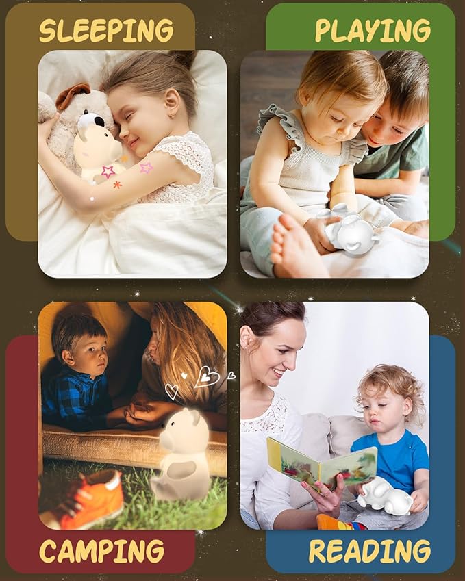 - Long-lasting Use - Our cute night light has a built-in 1200mAh battery. Once charged, it can provide up to 10 hours of usage, ensuring your space is illuminated throughout the night. Portable and cordless, it’s perfect for all-night comfort, camping, bathroom trips, can be used as baby room decor and a bedside cute night light for kids