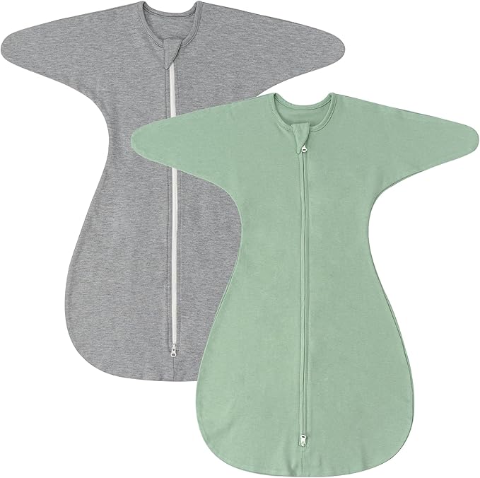 - Great Transitional Swaddle: Transition sleep sack with sleeves acts as a safe wearable blanket in instead of traditional swaddle, preventing baby from breaking out or getting covered/tangled in loose blankets. Special full sleeves allow baby to soothe himself by sucking his fingers with no constriction, and prevent him from scratching himself in sleep. Perfect swaddles for newborn or infants who are starting to roll over