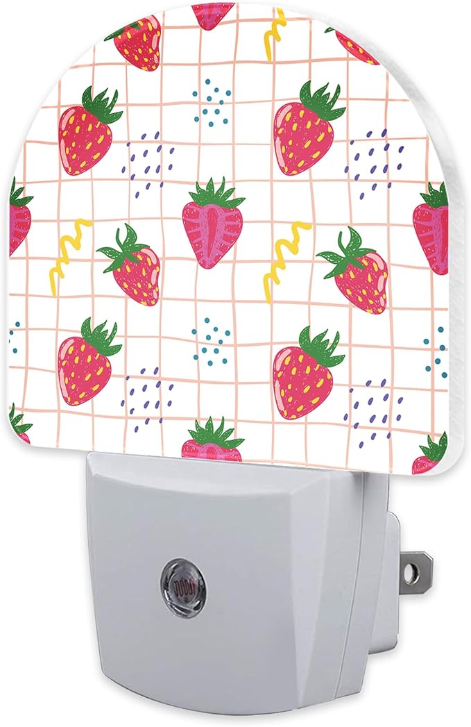 Cute Red Strawberries Night Light Plug into Wall, Abstract Funny Fruits Dusk to Dawn Night Light Plug in,0.5w Energy Saving Sleep Friendly NightLight for Kids Boys Girls Home Decor