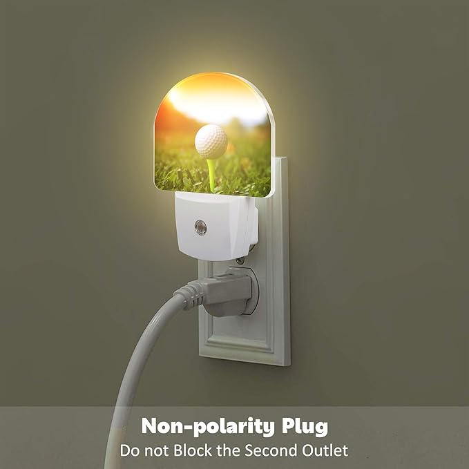 Golf Ball on tee Night Light, Green Grass Sunset Dusk to Dawn Night Light Plug into Wall,0.5w Energy Saving Sleep Friendly NightLight for Kids Boys Girls Hallway Stairway Bedroom