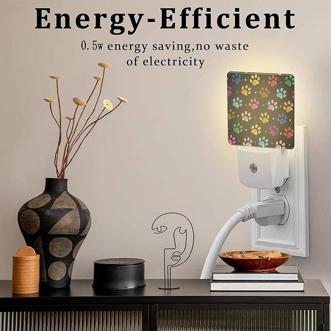 Colorful Paw Prints Night Light Plug into Wall, Animal Footprints Dusk to Dawn Night Light Plug in,0.5w Energy Saving Sleep Friendly NightLight for Kids Boys Girls Home Decor