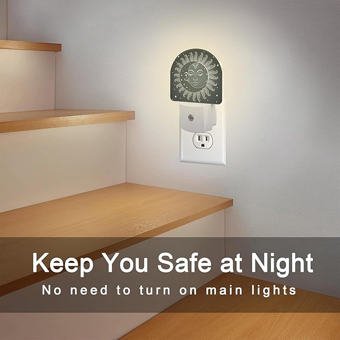 Vintage Boho Sun and Moon Night Light Plug into Wall, Celestial Moon Sun Stars Dusk to Dawn Night Light Plug in,0.5w Energy Saving Sleep Friendly NightLight for Kids Boys Girls Home Decor
