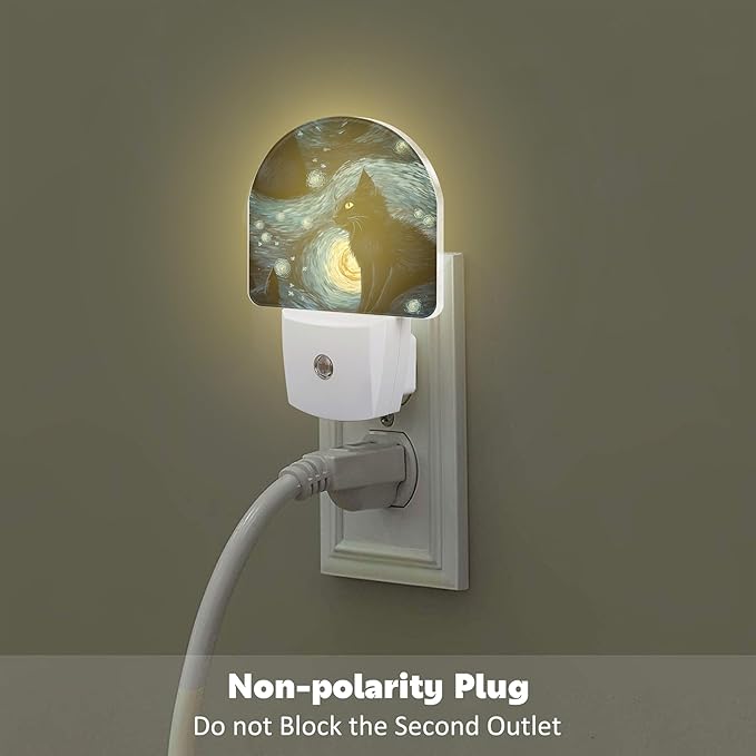 Starry Night Black Cat Night Light Plug into Wall, Abstract Oil Painting Cat Dusk to Dawn Night Light Plug in,0.5w Energy Saving Sleep Friendly Nightlight for Kids Boys Girls Home Decor