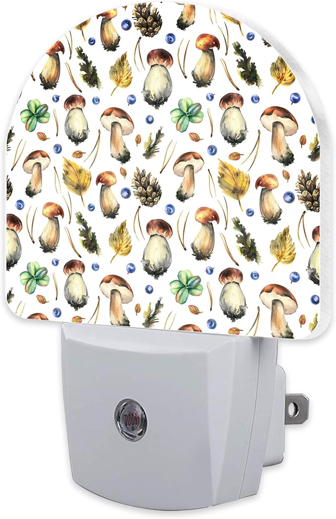 Boletus Mushrooms with Blueberries Night Light Plug into Wall,Forest Botanical Plants Leaves Dusk to Dawn Night Light,0.5w Energy Saving Friendly Nightlights for Kids Boys Girls