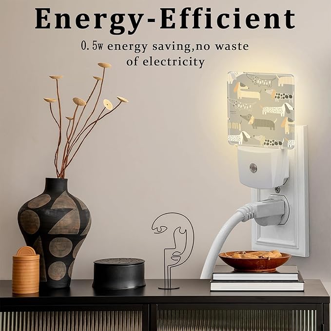 Cute Dachshund Night Light, Childish Cartoon Dogs Dusk to Dawn Night Light Plug in,0.5w Energy Saving Sleep Friendly Nightlights for Kids Boys Girls Home Decor