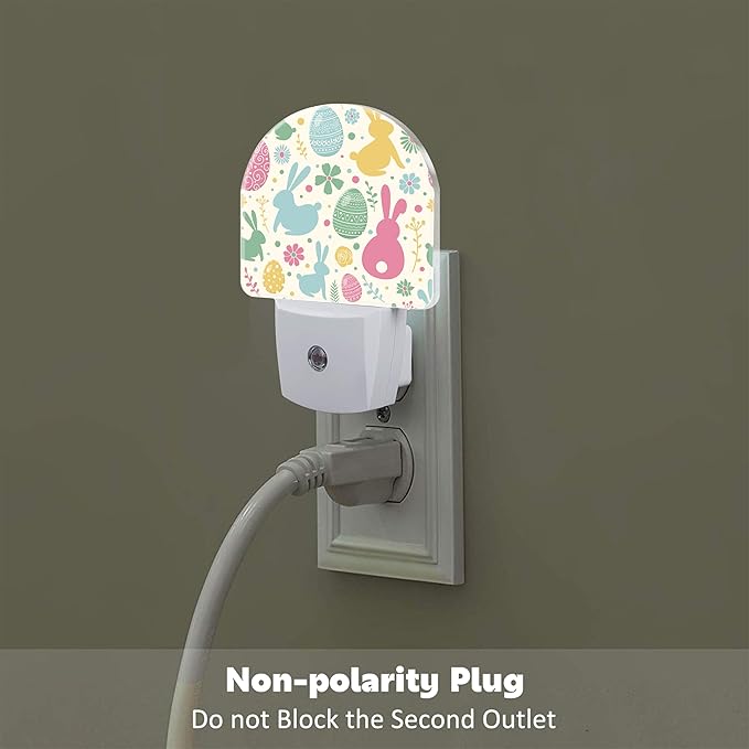Easter Bunnies and Eggs Night Light, Colorful Rabbits and Flowers Dusk to Dawn Night Light Plug in,0.5w Energy Saving Sleep Friendly NightLight for Kids Boys Girls Home Decor