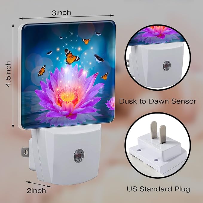 Purple Lotus Flowers Butterflies Night Light for Kids,Glowing Lotus Butterfly Night Light Plug in with Dusk to Dawn Sensor,0.5w Energy Saving Nightlight for Hallway Stairway Kitchen Bedroom