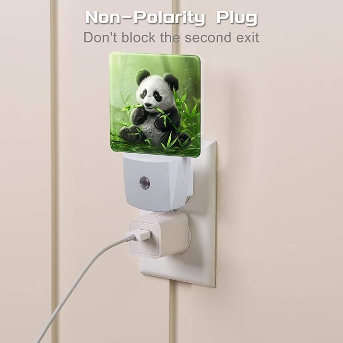 Cute Panda Eating Bamboo Night Light, Natural Animal Green Leaves Dusk to Dawn Night Light Plug in, 0.5W Energy Saving Sleep Friendly NightLight for Kids Boys Girls Home Decor