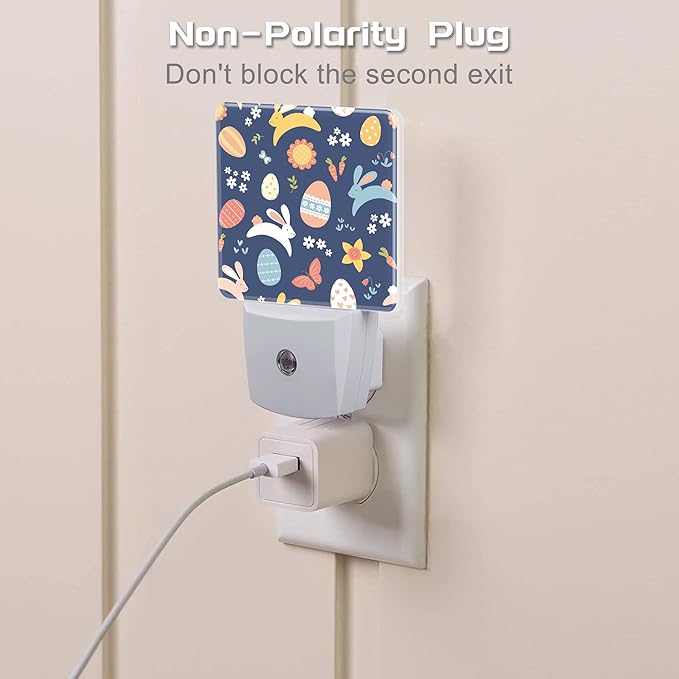 Easter Bunnies and Eggs Night Light, Colorful Rabbits and Flowers Dusk to Dawn Night Light Plug in,0.5w Energy Saving Sleep Friendly NightLight for Kids Boys Girls Home Decor