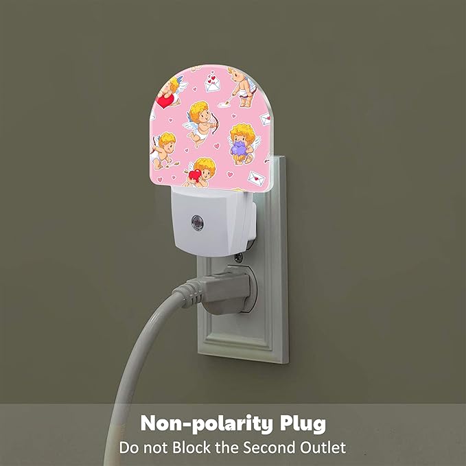 Valentine's Day Cupids with Bows Night Light for Kids,Cute Little Angels with Red Hearts Night Light Plug in with Dusk to Dawn Sensor,0.5w Energy Saving Nightlight for Hallway Stairway Kitchen Bedroom