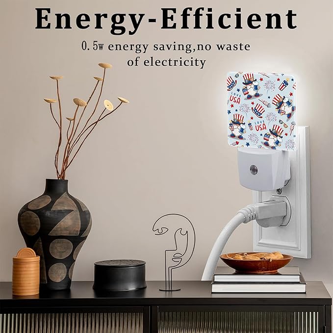 Cute American Patriotic Gnomes Night Light Plug into Wall, USA Flag Love USA Dusk to Dawn Night Light Plug in,0.5w Energy Saving Sleep Friendly NightLight for Kids Boys Girls Home Decor